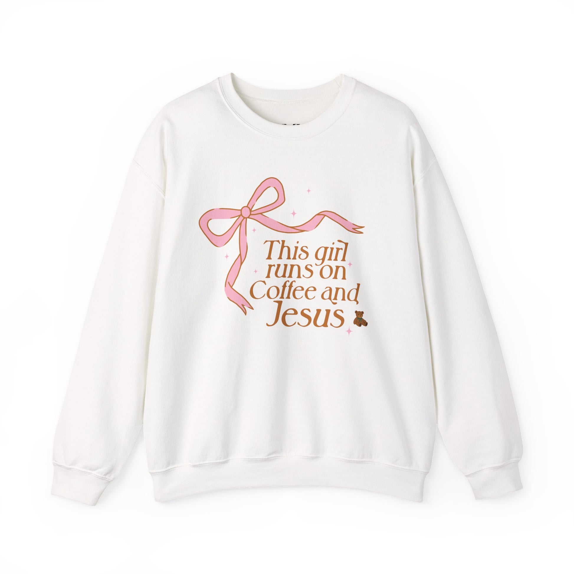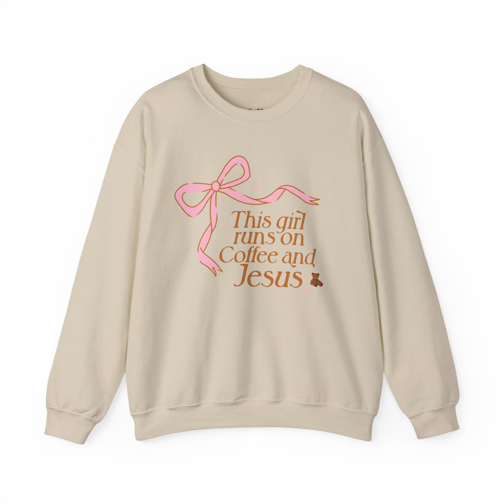 Christian Sweatshirt — "This Girl Runs on Coffee and Jesus" Cozy Crewneck